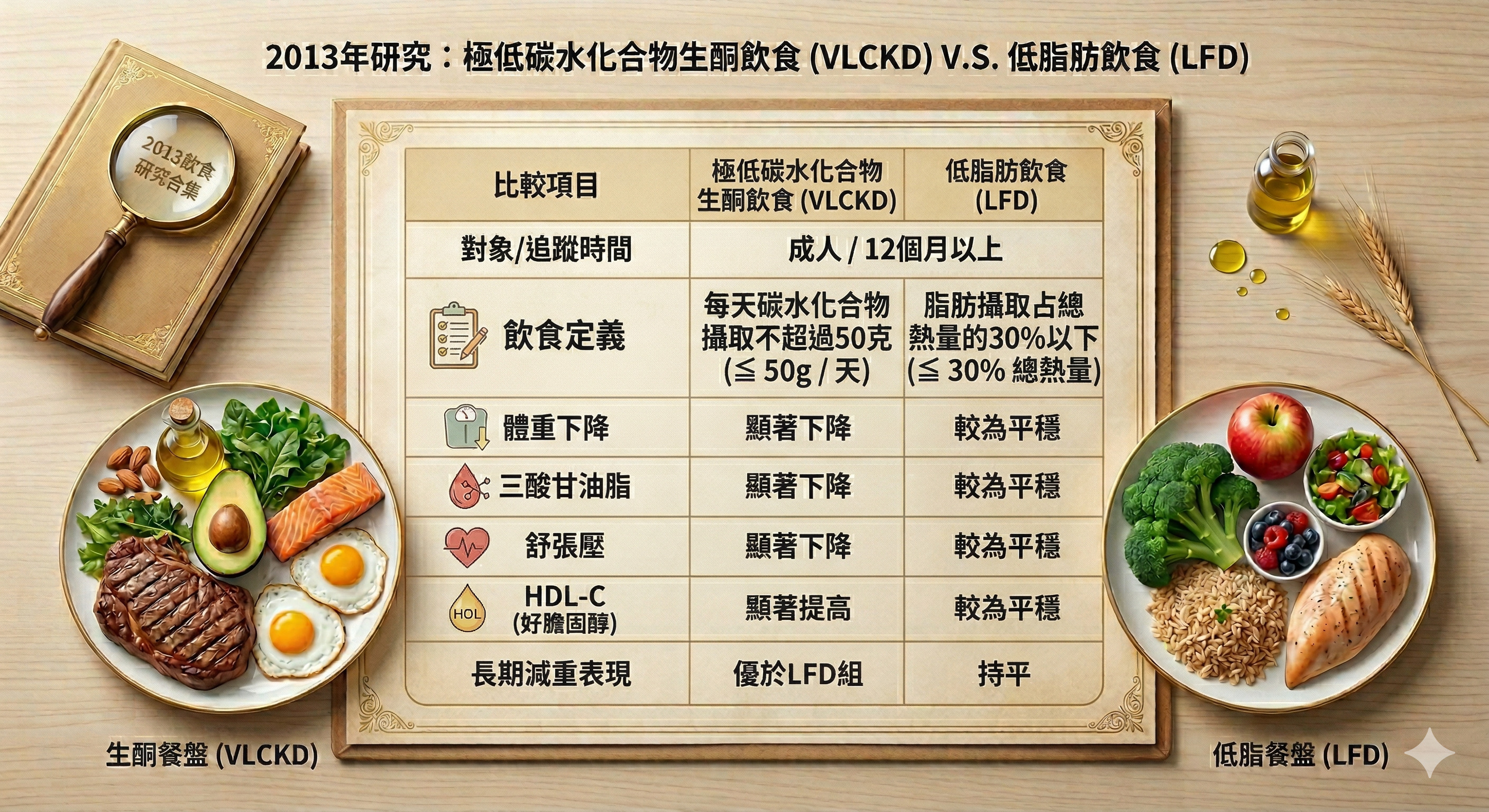 2013年的研究:低碳水生酮飲食與低脂飲食的比較