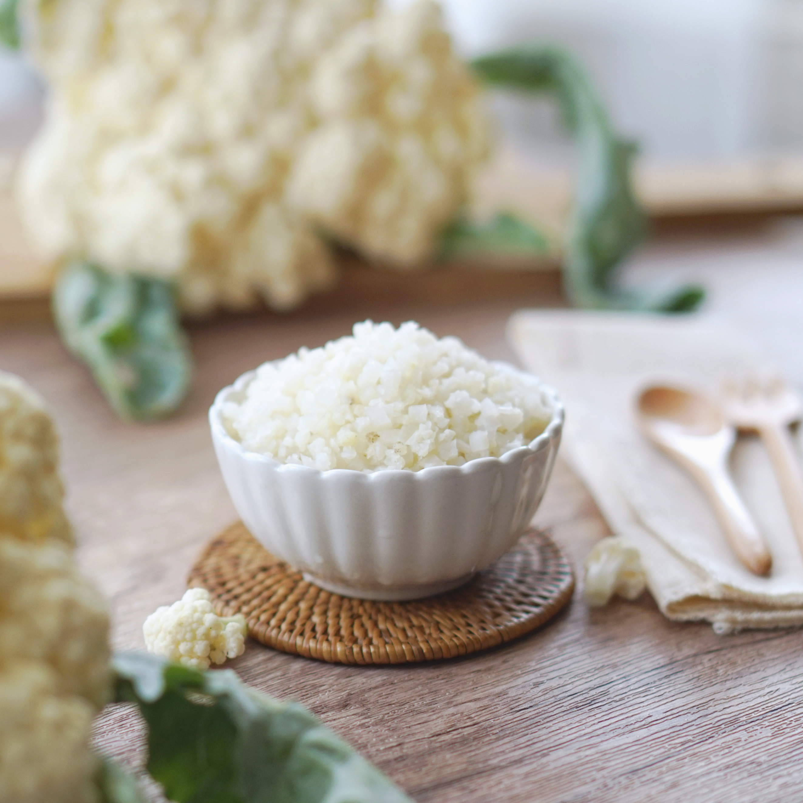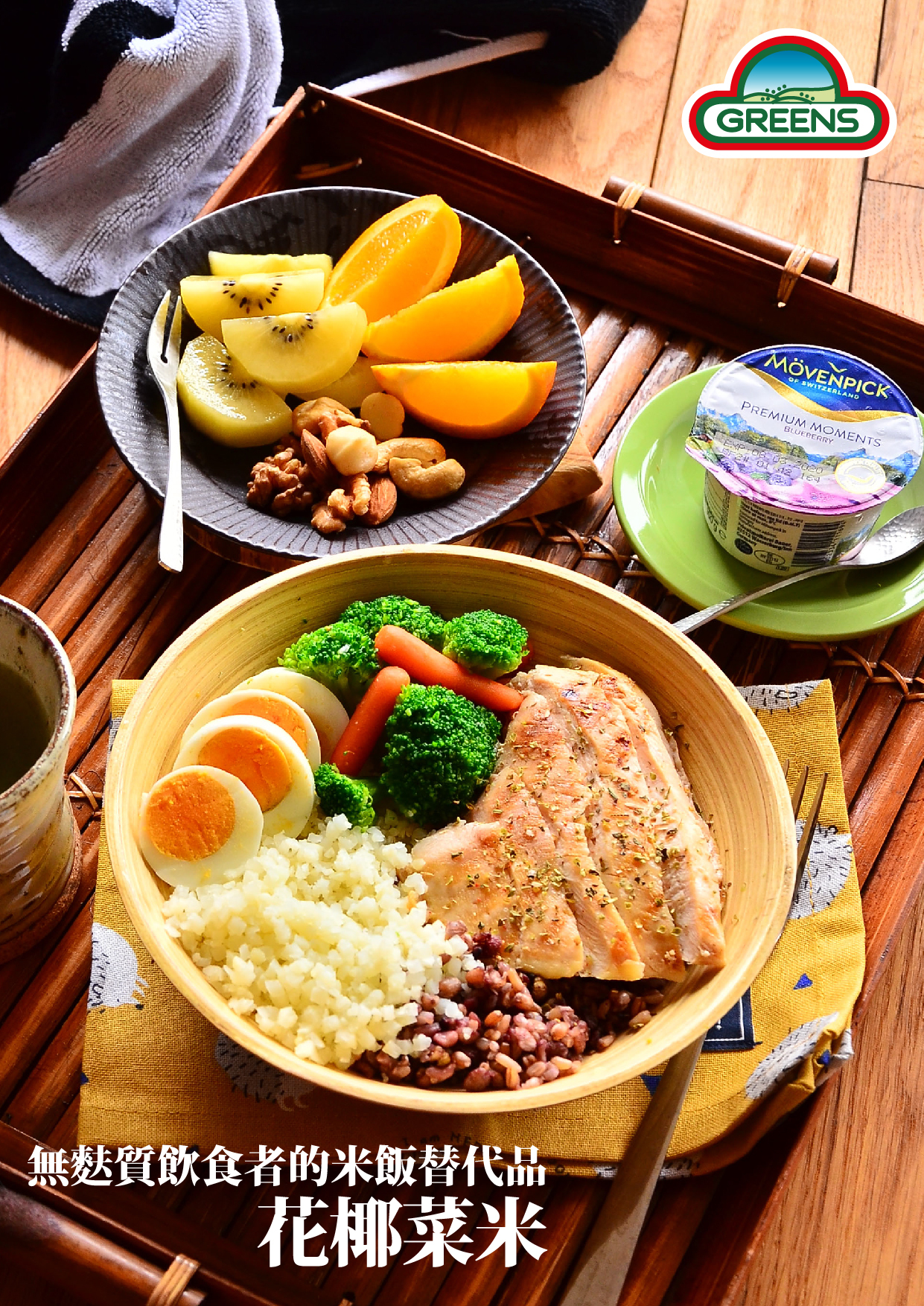 花椰米有米飯般的高飽足感,熱量及含醣量卻只有白飯的1/8 !!!