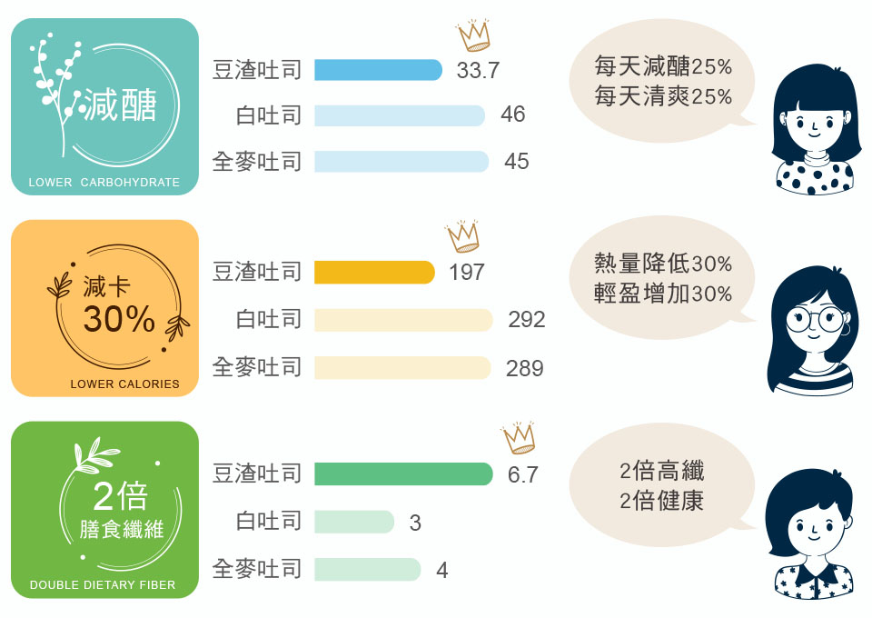 ● 兩片豆渣輕吐司 → 即滿足一天1/4的膳食纖維