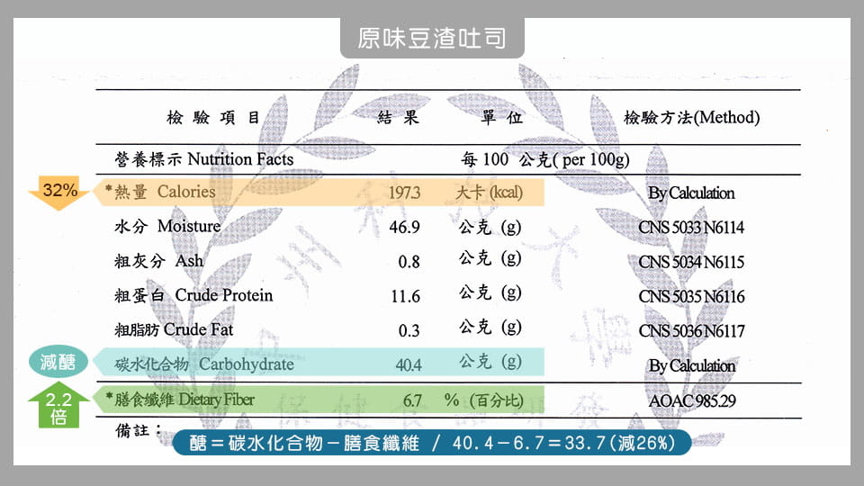 ● 一片豆渣輕吐司 → 熱量不到100大卡