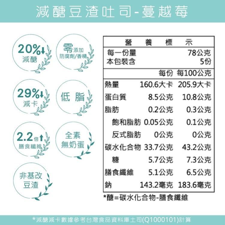 減醣豆渣吐司-蔓越莓-5厚片入(包) 390g
